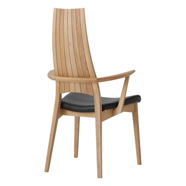 花弁をモチーフとした優美なラインの背もたれが特徴のハイバックアームチェアです。オーク材でブラックウォールナット材を挟み縦に伸びるラインを強調。柔らかでしなやかな印象を引き出しています。