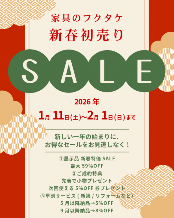 🎍家具のフクタケ 新春SALE🎍 1月10日(土)〜2月1日(日)