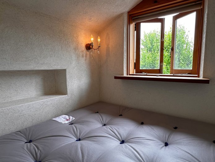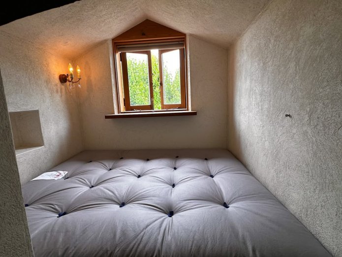 ベットに座った時に小窓から外の景色が見れる ようにしたい。