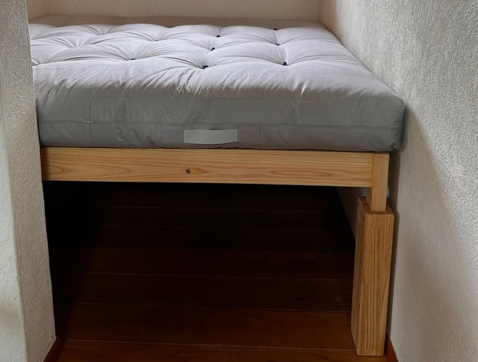 そこでフクタケで215mmベッドの高さを あげる“ゲタ”を集成材で製作して