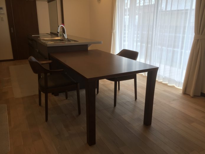 明るい床にブラックウォルナットのダイニングで上手くバランスが取れて良かったかな。