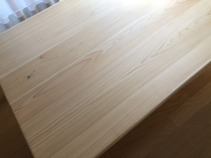 棚板もヒノキの無垢材でダボで高さが変えれます。